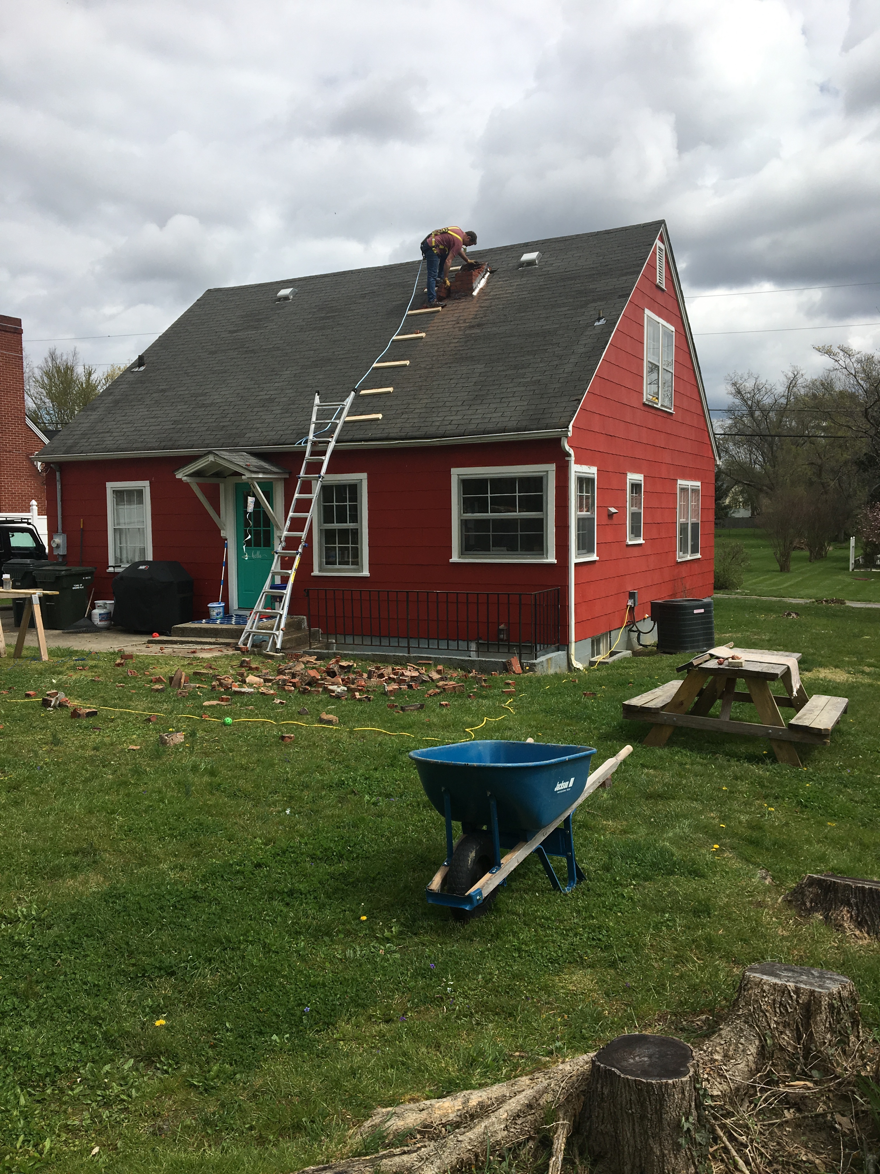 I became acquainted with a jack hammer during the chimney removal process. “What are my thoughts on using a jack hammer”, you ask? Well, I can honestly say, I hope I never come in contact with a jack hammer again in my lifetime. For an entire week my arms were either numb or vibrating uncontrollably. And I had a very difficult time sleeping because of the aforementioned ailments.